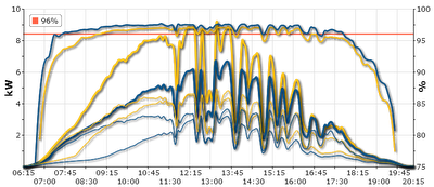 Wir sind sehr froh, dass wir uns für SMA Tripower Wechselrichter entschieden haben. Sie laufen z.Zt. durchgängig mit Wirkungsgraden von 96 ... 97%.